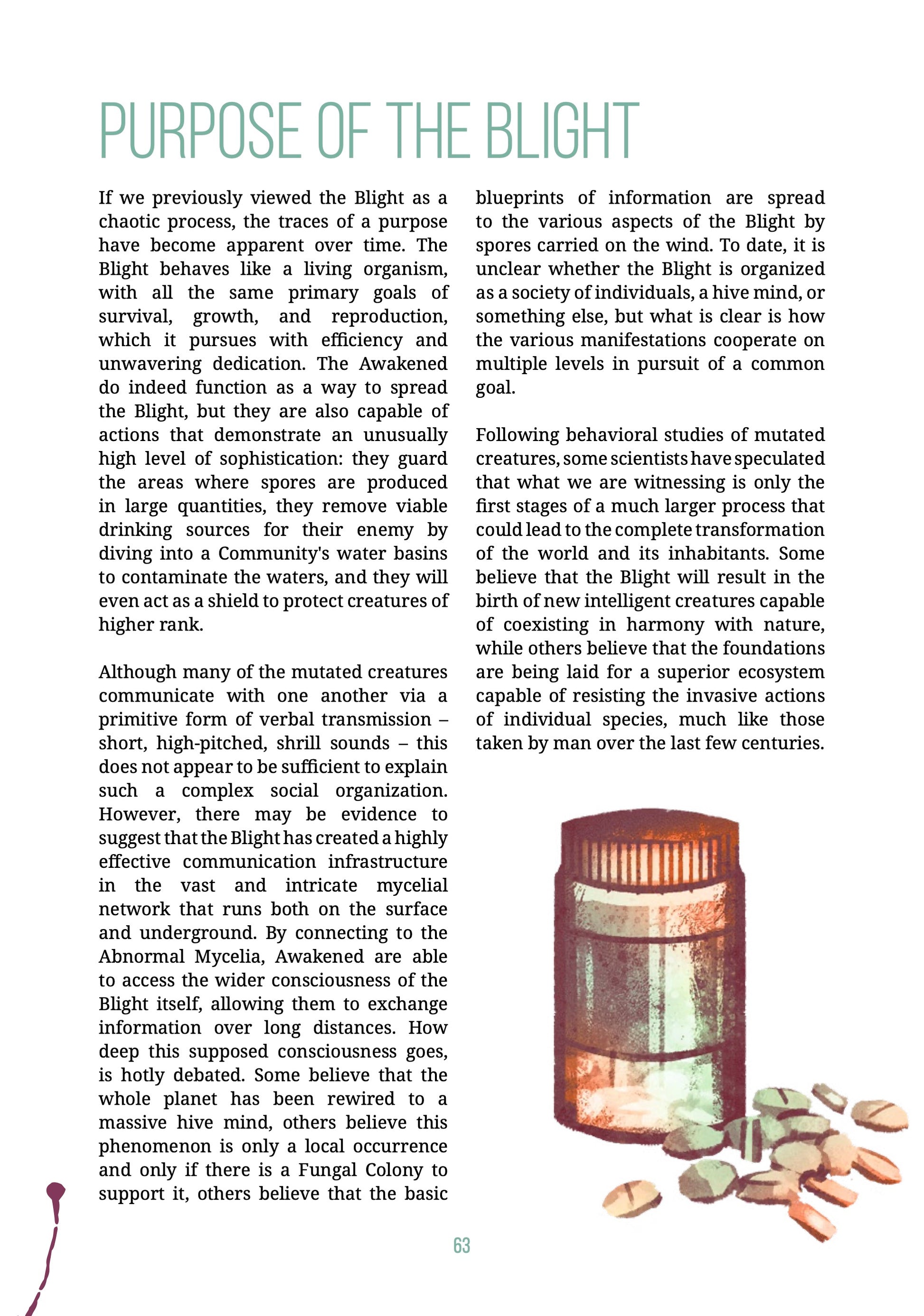 On the fringes of a reborn ecosystem, survivors endeavor to eke out a life amid a foreign, resurgent wilderness. They find themselves alien in their ancestral home, contending with the menaces of grotesque creatures and human hostility alike, all while haunted by the dread of sudden metamorphosis into vessels of the Blight.