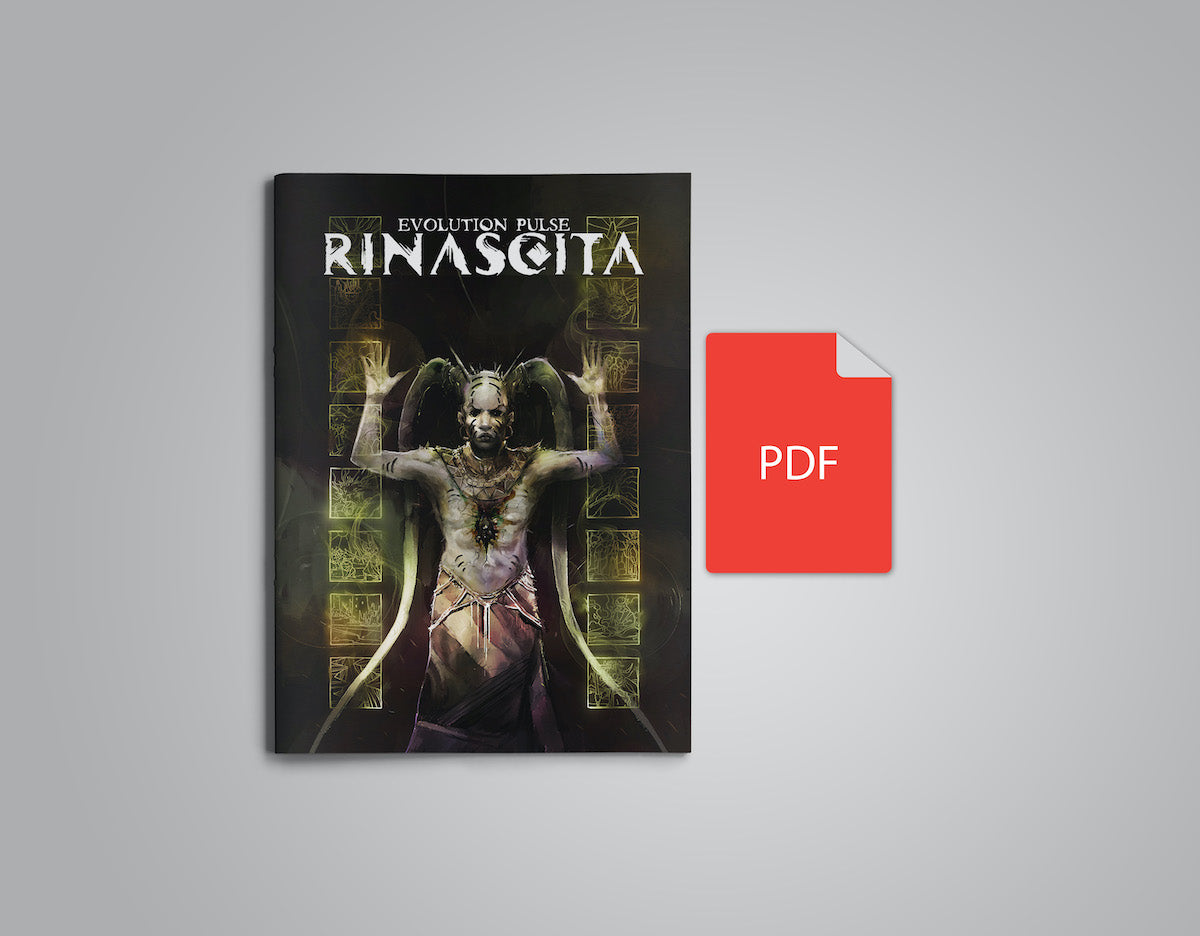 - Una esaustiva e ricca descrizione dell’antico mondo di Evolution Pulse Rinascita, e tutte le regole e le parole chiave per portare la sua vasta mitologia nelle vostre partite.